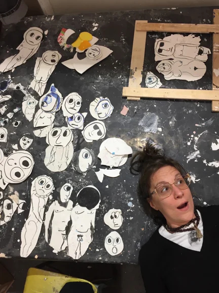 I love Caroline Achaintre’s work - she’s a new find for me. Dorothy Ionone and Hans Schärer for their erotic drawings. I just bought a great book on Paul Klee’s puppets that I’m really into. The sculpture of Huma Bhabha and Thomas Houseago. And I’ve also been looking at the Bread and Puppet Theater costumes, as well as Diego Rivera’s collection of paper mache sculptures. Subconsciously, I think I might be moving off the wall?!
