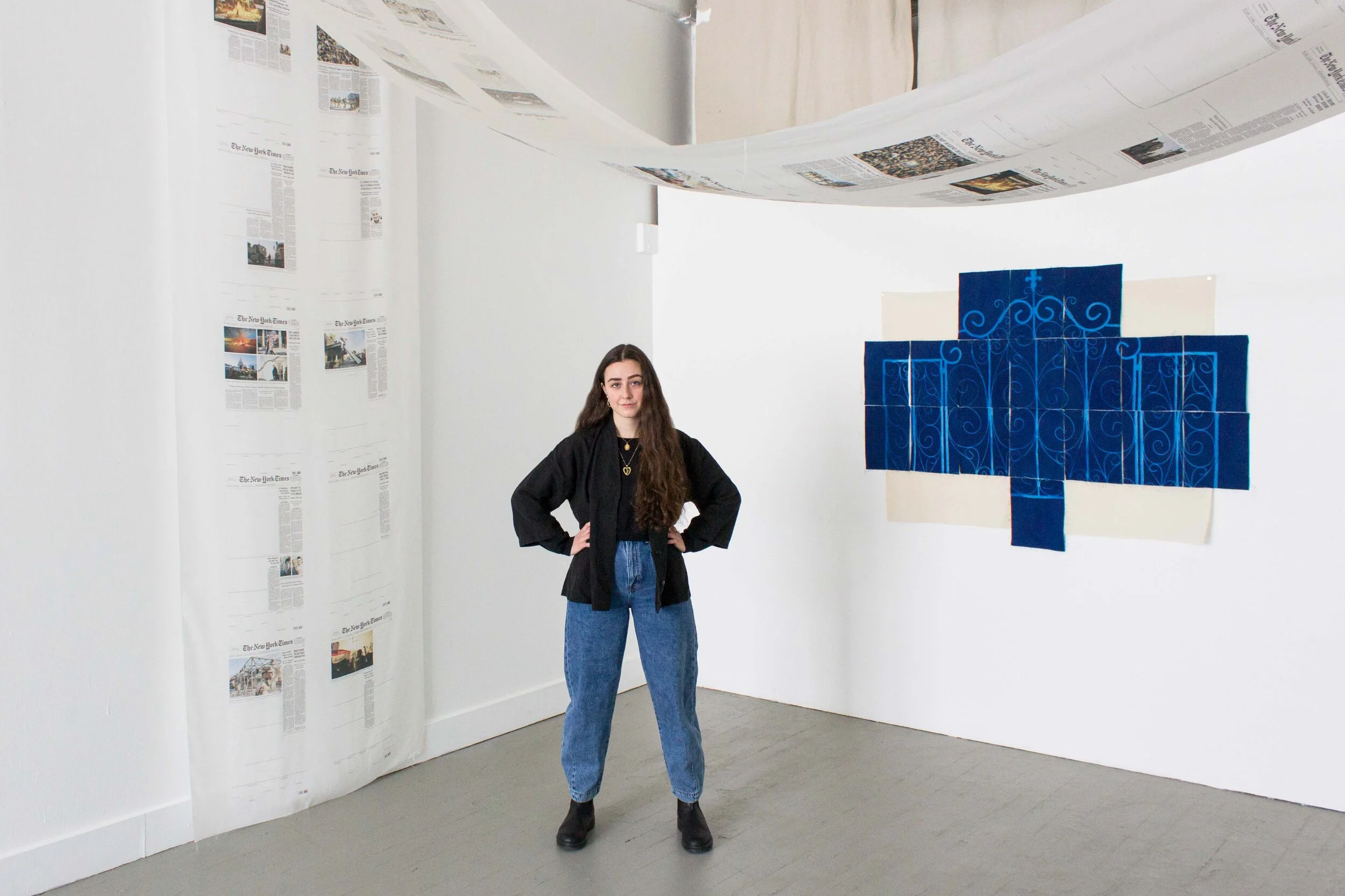 My cyanotypes and fabrics are really intuitive and on-the-fly. Of course a certain amount of planning is involved to prep the materials and set up, also considering that the processes are time-sensitive and dependent on the sunlight, but there’s still a considerable level of control that I willingly give up and give into. Those are the magic moments. And then they really come together and feel complete when I can assemble and install them altogether in a space. Sometimes they are stored in sections, and I’m just waiting for the moment to see how they interact alongside each other in full context.