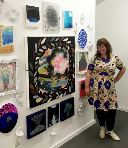 Sure! I have been thinking a lot lately about my paintings as an ever-growing encyclopedia of images that make up a larger vision. Each piece plays a part in making up a larger whole. I think that many of my paintings and drawings lend themselves to each other, providing context that, if viewing a single piece, might not be obvious. I like the idea of having interchangeable relationships, putting one painting next to another and seeing what it indicates, and what they lose and gain through this shuffle. I have always had this concept in the back of my mind —a mix 'n match of paintings, because when I am working in my studio I am constantly moving paintings around and hanging them together in various clusters while working through them, reorganizing by color, pattern, texture, or aura.
