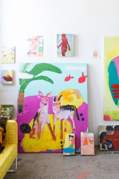 I can't get over Alice Mackler's work—it's so wonderful. Clementine Hunter is another idol. Katherine Bradford is making really important and enchanting work right now. There are so many, my list goes on and on. Matisse, Hockney, Gauguin, Kahlo, Bourgeois, Diebenkorn...