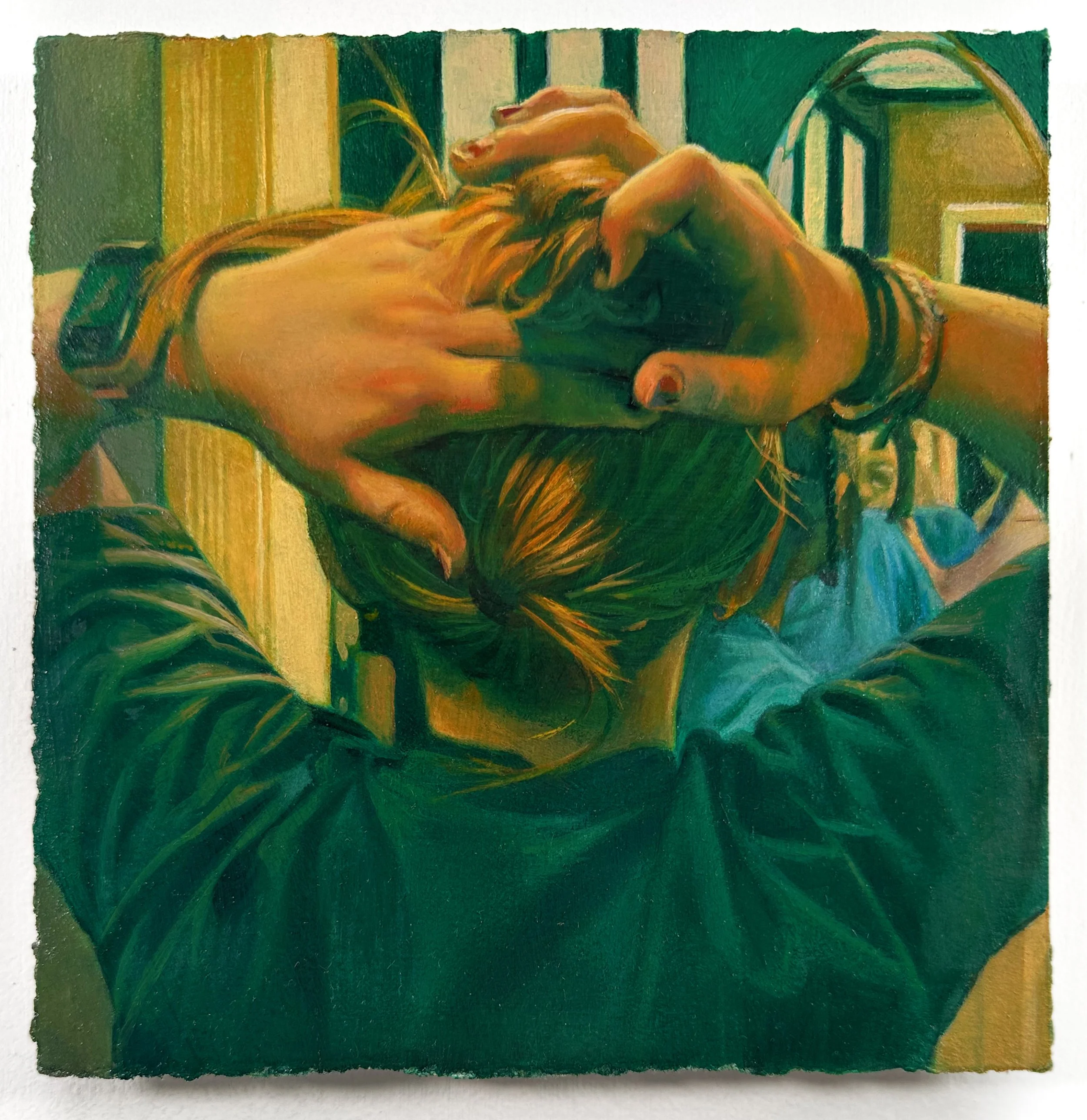 Mirror, 2025. Gouache and oil on paper mounted on panel, 6x6 inches