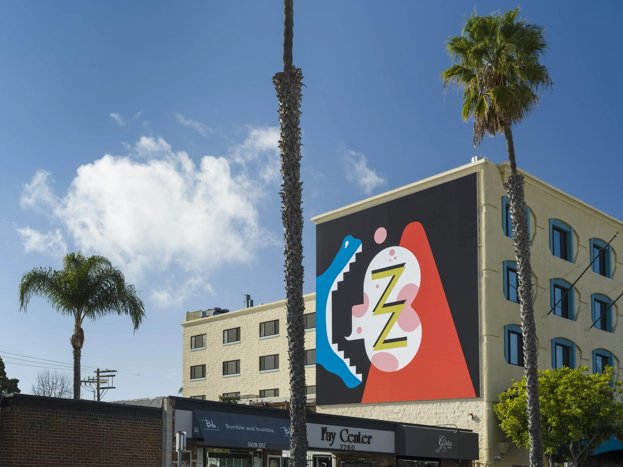 Installation view, Newz!, 2021. Murals of La Jolla, 7766 Fay Avenue, La Jolla, CA. Photo credit: Philipp Scholz Rittermann.