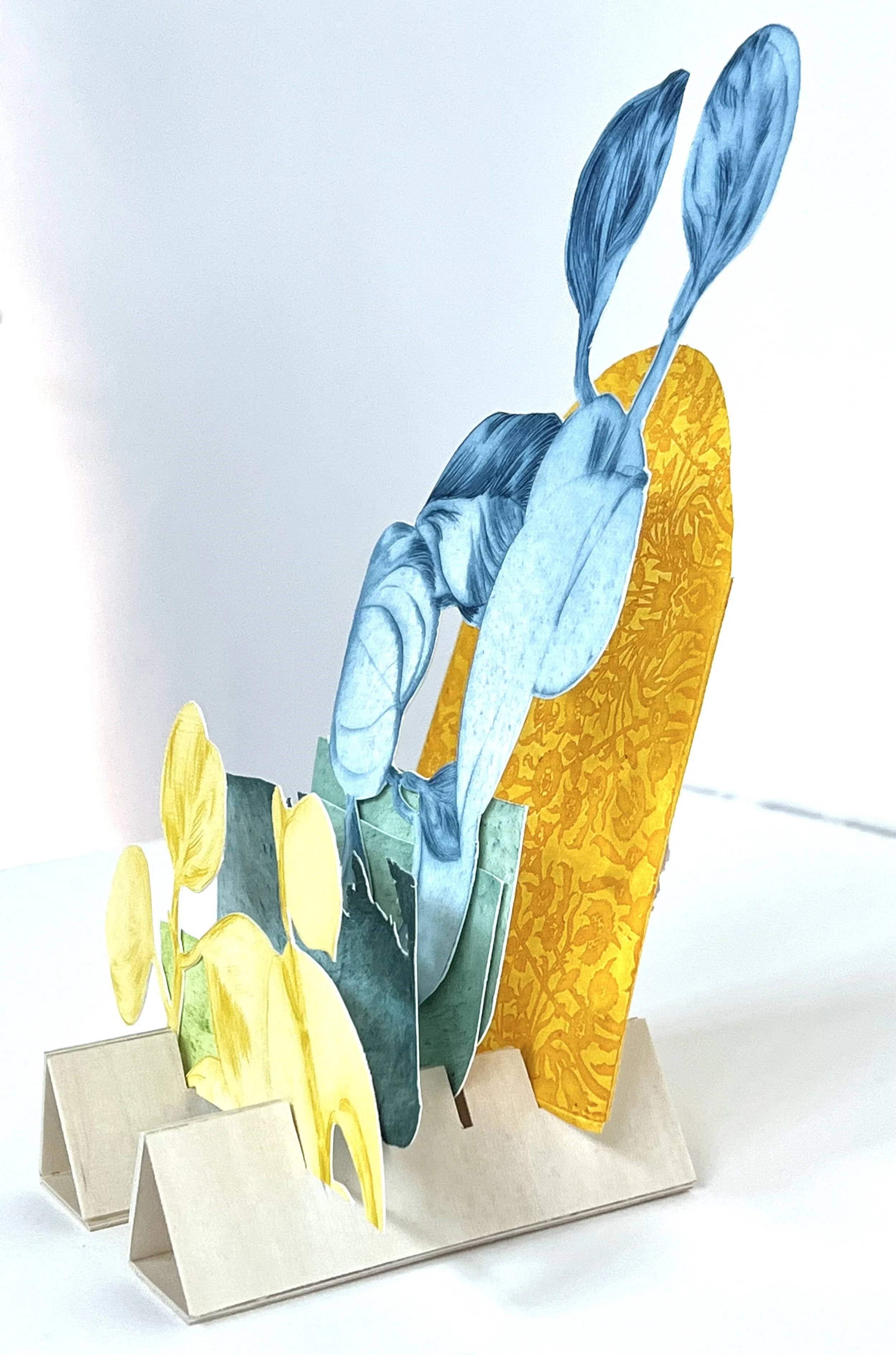 Right now I am cutting a 3’ x 3’ relief print for San Francisco Center for the Book’s Roadworks Steamroller Printing Festival. I’m also working on a new body of layered tunnel books, escape hatches and utopias. In the background I am building a body of works on paper - observational layered botanical studies and washes of color. I keep hearing the whispers of combining my large scale works on paper and my layered cut-paper tunnel books, we’ll see where that goes!