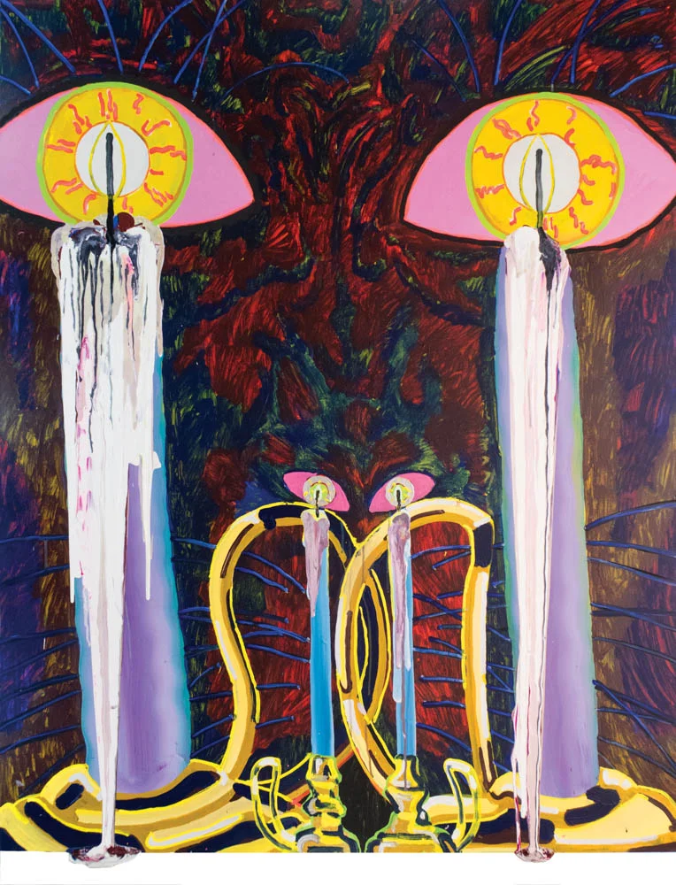 O for sure! I think humor is an important mechanism in the work; it creates an access point or disarms the viewer, letting them walk into the work. Humor is relatable and exciting and can be superficial, or profound, or absurd and existentially charged. It helps round out the interactions I have with painting. Like everyone experiences, it can be a defeatist activity and feel crazy to get hopelessly depressed over some funny picture on a rectangle, BUT! having some semblance of humor can assist with that angst. Often my brand of humor is self-deprecation (probably a defense mechanism) but it makes for some weird images.